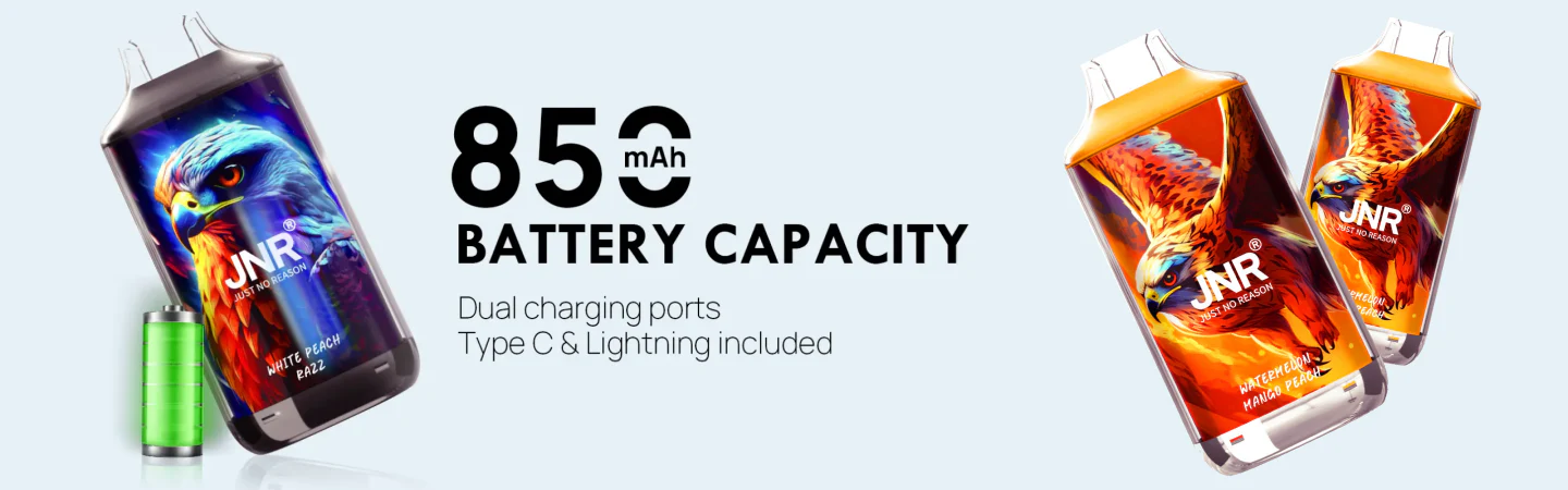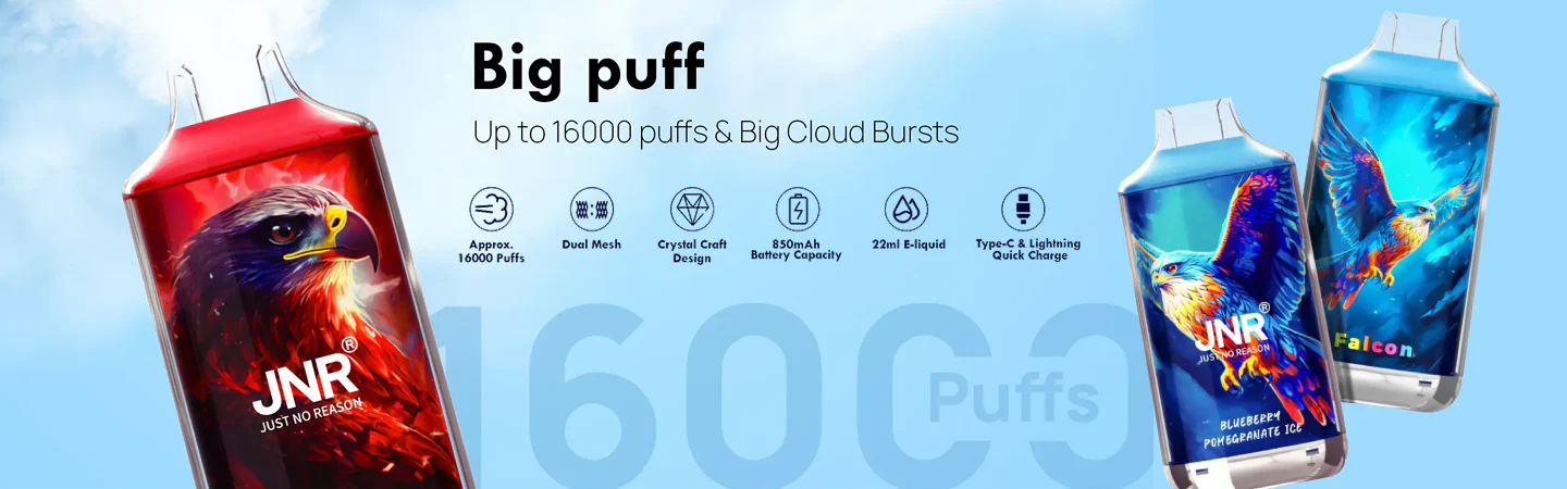 A JNR Falcon 16000 hosszú használatot biztosít (16000 slukk), erőteljes 850 mAh akkumulátorral és különféle ízekkel, amelyek minden ízlést kielégítenek. Minden egyes slukk sima gőzt és intenzív ízt nyújt.
