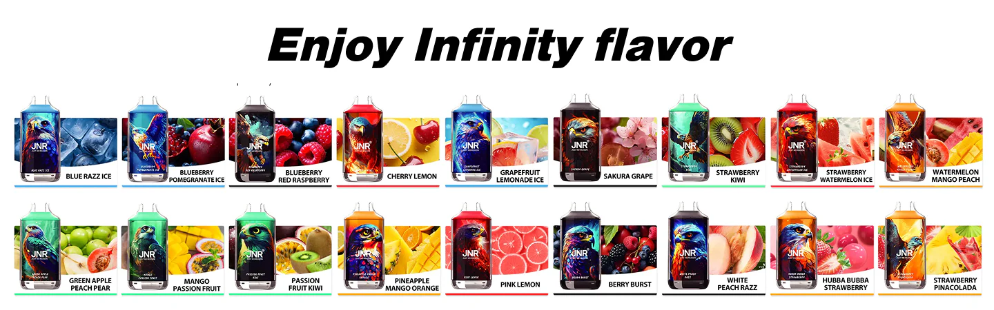 A JNR Falcon számos különféle ízben kapható, amelyek minden ízlésnek megfelelnek – a gyümölcsös mixektől kezdve a frissítő jeges ízekig.